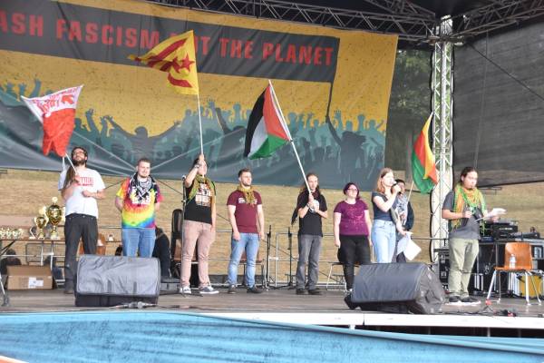 Festîvala yekem a bi sirûda ‘Faşîzmê Hilweşîne, Xwezayê Biparêz’ ku li ser îtifaqa Ciwanên Enternasyonalîst hate lidarxistin saet 13:00’an li bajarê Eûskîrchen a Elmanyayê destpê kir.
