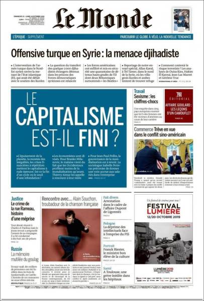 Rojnameya Le Monde jî bi manşêta ''gefa cîhadî' derket. Rojnameyê got, ''Destwerdana artêşa Tirk talokeya Dewleta Îslamê ku bi desteka Kurdan hatî têkbirin dîsa zindî kir''. Rojnameyê cih da analîza kesekî ya li ser mijarê.