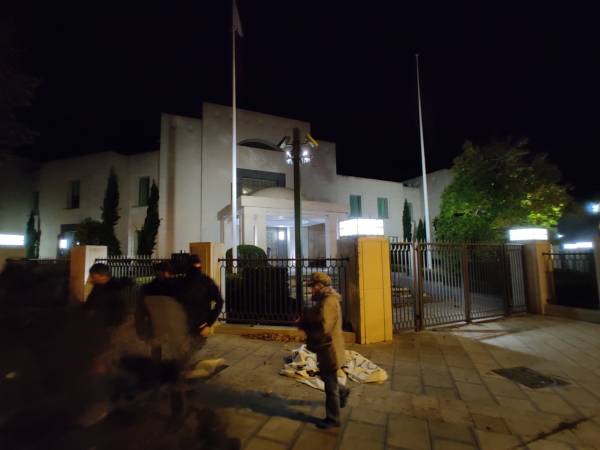 Kurd, ciwanên çepgir û anarşîst ên ji Belçîkayê li pêşiya Konsolosxaneya Katarê dagirkeriya dewleta Tirk û piştgirên wê protesto kirin.