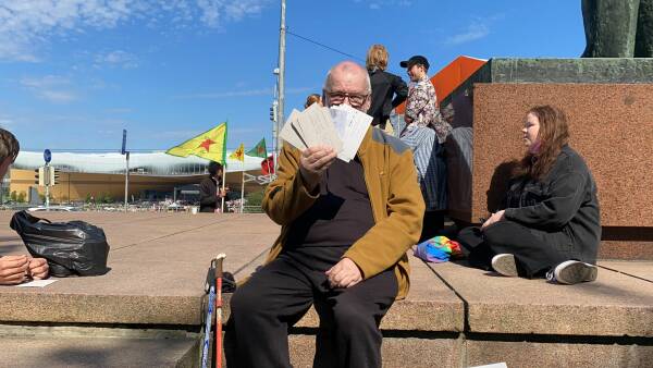 Tora Piştevaniya bi Kurdistanê re ya ku ji rêxistinên çepgir, komunîst û anarşîst pêktê, li ber Parlementoya Fînlandiyayê êrîşên qirkirin û dagirkeriyê yên desthilatdariya AKP-MHP’ê protesto kirin.