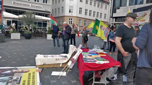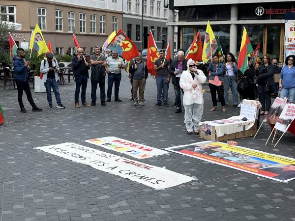 Çalakî bi berzkirina dirûşmeyên “Kurdistanê biparêze, destûr nede dagirkeriyê”, “Dewleta Tirk kîmyayê bi kartîne”, “Soldarîtet med Kurdistan (Piştevaniya bi Kurdistanê re)”, “Terorîst Erdogan” û “Kujer Erdogan” bi dawî bû.