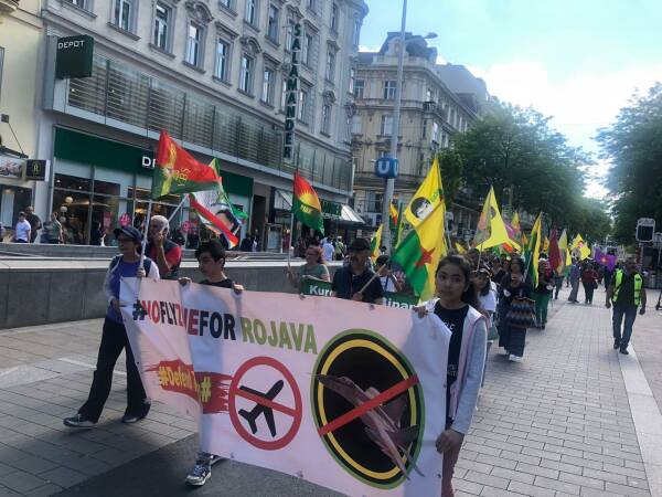 Li paytexta Avûstûrya Vîyanayê bi organîzeya Tevgera Şoreşa Yekîtiya Awûstûryayê dagirkerî û hevkarî hat protestokirin.