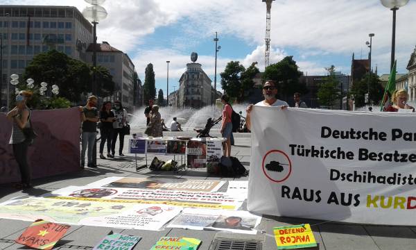 Qetilkirina 3 jinan a li Kobanê ji aliyê dewleta Tirk a dagirker ve li bajarê Munîh ê Elmanyayê hate protestokirin.