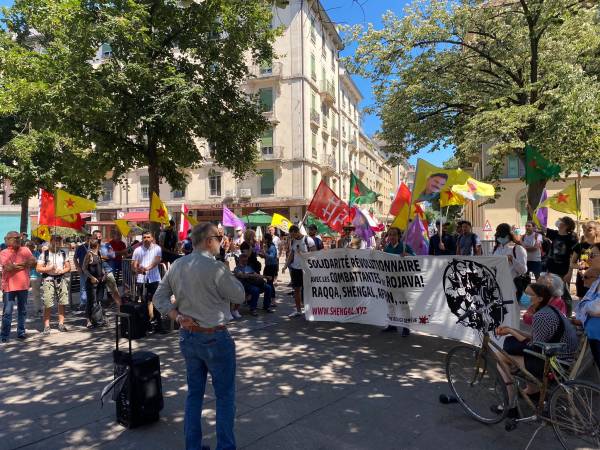 Li Cenevreyê jî bi banga Komîteya Hevgirtina Rojava li Place de la Navîatîonê mîtîngek hate lidarxistin. Parlementerê Federal ê Partiya Sosyalîst Carlo Sammûraga got ku “Em bi gelê Kurd re ne, yên ku duh li dijî barbariya DAÎŞ’ê têdikoşiya û îro jî li hemberî faşîzma AKP û Erdogan têdikoşin.”