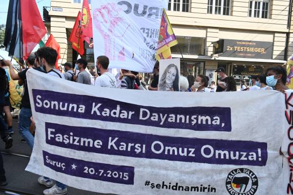 Piştî axaftinan bi sloganên ‘Bijî şoreşa Rojava’ û ‘Ji bo Sirûcê edalet, ji bo her kesî edalet’ hate berzkirin.