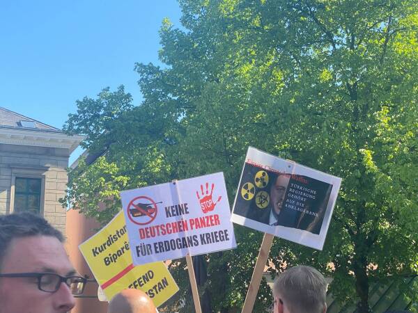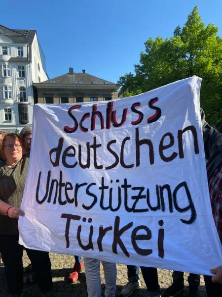 Kurdistaniyên li Eyaleta NRW‘ê dijîn, Wezîra Karên Derve Annalena Baerbock a ku ji bo propaxandaya hilbijartinê hat Wuppertalê ji ber piştgiriya ku dide êrîşên dagirkeriyê yên dewleta Tirk protesto kir.
