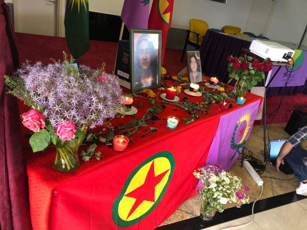 Endamê Komîteya Serokatiya Giştî ya KCK’ê Diyar Xerîb ê ku 5’ê Tîrmeha 2019’an di êrîşa hawayî ya dewleta Tirk de hatî şehîdxistin, li Stockholm a paytexta Swêdê bîranîn.