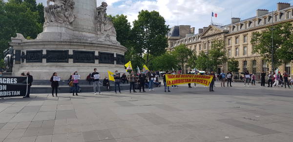 Kurdistanî û dostên wan ên li bajarê Marsîlya ya Fransayê hatin ba hev, êrîşên qirker ên dewleta Tirk protesto kirin. Di çalakiyê de li ser navê NCKD a Fransa axaftin hate kirin. Belavokek Fransî jî di çalakiyê de hate xwendin.