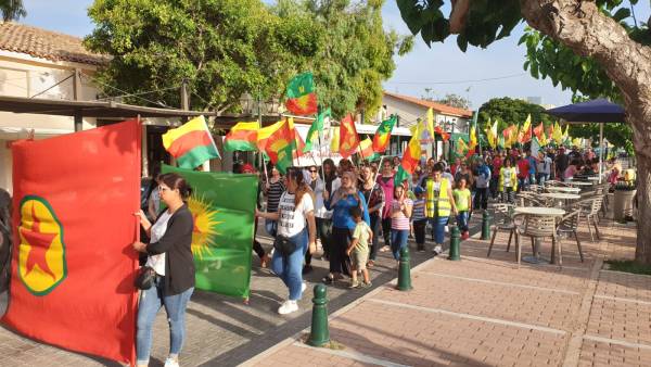 Bi pêşengtiya Tevgera Ciwanên Şoreşger li Lavrîo ya Yewnanistanê bi meşek girseyî dagirkeriya Tirk hate protestokirin. Di meşê de wêneyêk mezin ê Rêberê Gelê Kurd Abdullah Ocalan hate vekirin û alên PKK, KCK’ê jî hatin hildan. Di meşê de bê navber dirûşmên ‘Dîktator Erdogan’, ‘Bijî Berxwedana PKK’ê û ‘Bimre xiyanet’ hatin qîrkirin. Siyasetmedarê Kurd Bûrhan Karakoç ê li vir axivî diyar kir ku bi êrîşan dewleta Tirk hebûn û vîna gelê Kurd kiriye hede û got: “Çi dibe bila bibe, gelê Kurd û têkoşîna azadiyê serî netewandiye, natewîne.