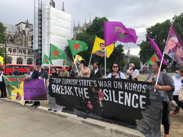 Kurdên ku li pêşiya Parlementoya Brîtanyayê bi pêşengiya Meclîsa Gelê Kurd hatin ba hev, êrîşên dagirker ên dewleta Tirk protesto kirin. Di çalakiyê de posterên Rêberê Gelê Kurd Abdullah Ocalan, alên YPG û YPJ’ê hatin hildan û bê navber dirûşmên ‘Dewleta Tirk a faşîst’ û ‘Terorîst Erdogan’ hatin qîrkirin. Li vir Hevserokê Meclîsa Gelê Kurd a Brîtanyayê Ercan Akbal axivî û daxwaz ji Îngîltere kir ku dawî li firotina çekan a ji bo Tirkiyeyê bîne.