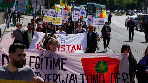 Li bajarê Frankfûrt ê Elmanyayê êrîşên dewleta Tirk ên li ser Kurdistanê yên bi hevkariya PDK’ê bi li dar xistina meşekê heta bi Balyozxaneya DYE’yê protesto kir.