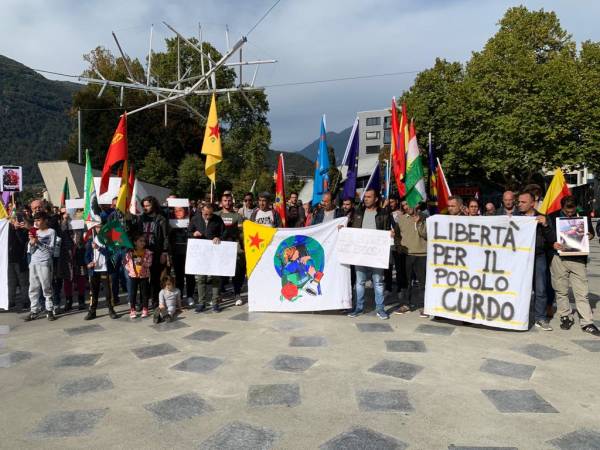 Çalakvanên ku li stasyona trenê ya bajarê Bellînzona ya Kantona Tessîn a Swîsreyê hatin ba hev bi meşekê dagirkeriya Tirk a li ser Bakur û Rojhilatê Sûriyeyê şermezar kir. Rêxistinên ciwanên alternatîf a Swîsre û nûnerên partiyên siyasî piştevanî dan çalakiyê. Daxwaza hate kirin ku divê dewleta Swîsre û Meclîsa Kantona Tessînê li dijî êrîşên dagirkeriyê bibin xwedî helwest.