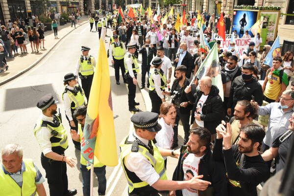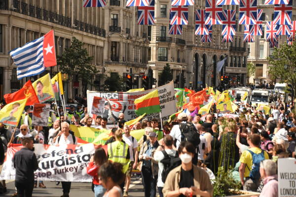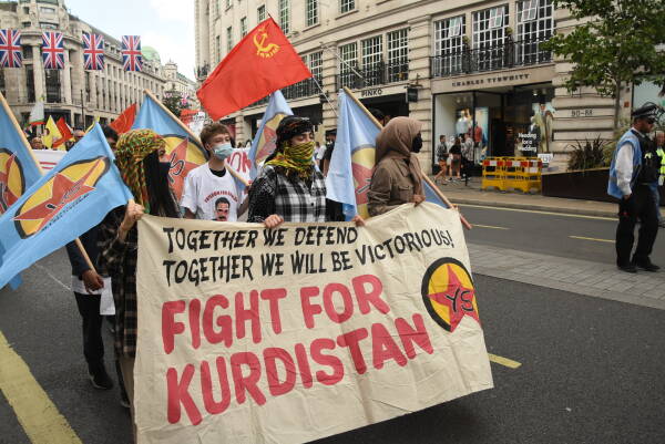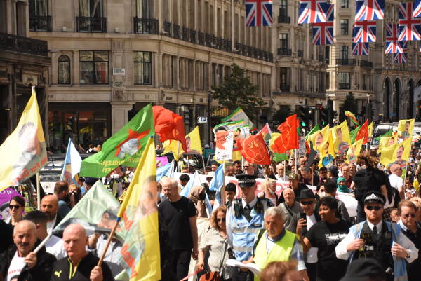 Li Londonê bi hezaran kes bi komên enternasyonal re gotin, ‘Kurdistanê biparêze’ û meşiyan.