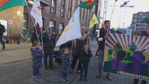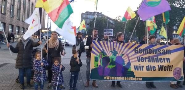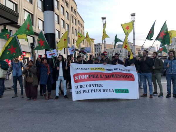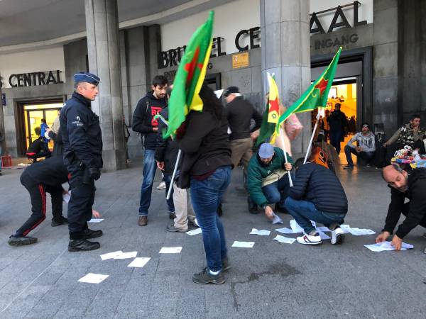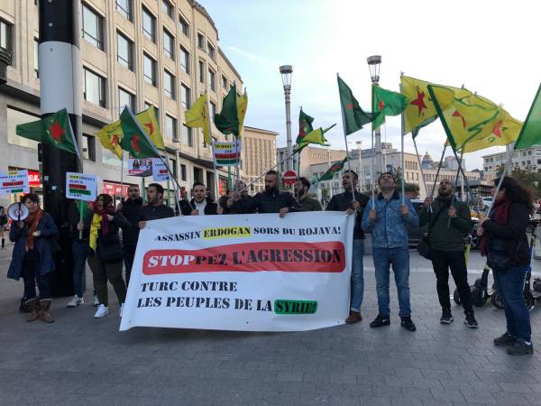 Girseya li Qada Garcentral a paytexta Belçîka Brûkselê kom bûn, bi mîtîngekê dagirkeriya Tirk a li ser Bakur û Rojhilatê Sûriyeyê protesto kirin.