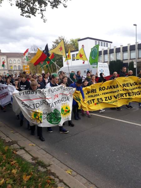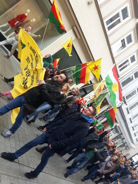 Kurdistanî û dostên wan ê ji roja yekema êrîş ve her roj li qadanin, li bajarê Gotinbûrg, Stûtgart, Freîbûrg, Aachen ên Elmanya bi çalakiyên cihê reng êrîşên qirker û dagirkeriya Tirk a li ser Bakur û Rojhilatê Sûriyeyê protestokirin. Di axaftinên çalakiyê de hatin kirin, hate gotin ku divê çalakiyên li dijî dagirkeriyê bidomin, daxwaza hê zêdebûna hestyariya navneteweyî hate kirin.