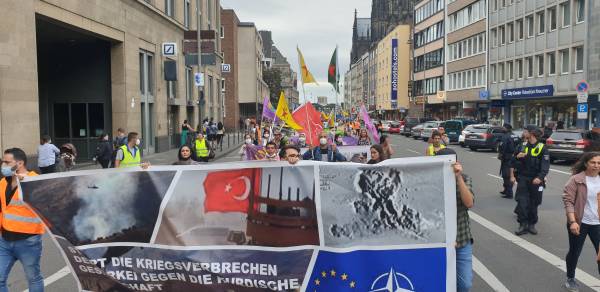 Li bajarê Kolnê yê Elmanyayê êrîşên dagirker ên dewleta Tirk hate protestokirin. Li kolanên Kolanê dengê sloganên ‘Erdoganê dîktator’ hejiya.