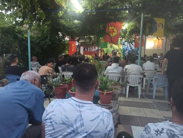 Posterê mezin yê Rêberê Gelê Kurd Abdullah Ocalan û wêneyên Hakî Karer, Îbrahîm Kaypakkaya, Çaran (Ferhat Kûrtay, Eşref Anyik, Mahmût Zengîn û Necmî Oner), Aysel Dogan ku çend roj beriya niha li Elmanyayê şehîd bû û şehîdên Zap û Avaşînê li baxçeyê navendê hatin danîn.