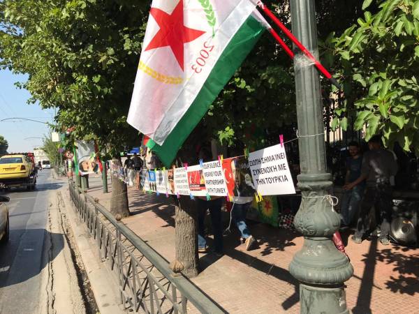 Li paytexta Yewnanistan Atînayê jî êrîşên dagirker ên dewleta Tirk a li ser Bakur û Rojhilatê Sûriyeyê protestok kirin. Di saetên sibê de Kurdistaniyan li pêşiya Ofîsa Yewnanistan a Konseya Yekîtiya Ewropayê standek vekirin.