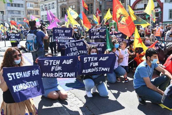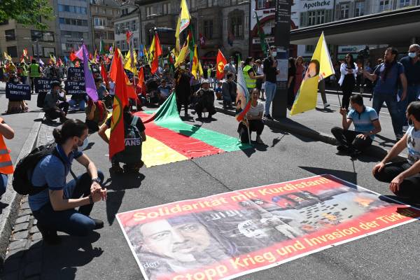 Êrîşên dagirker ên dewleta Tirk li bajarê Baselê yê Swîsreyê bi meşekê hate protestokirin.