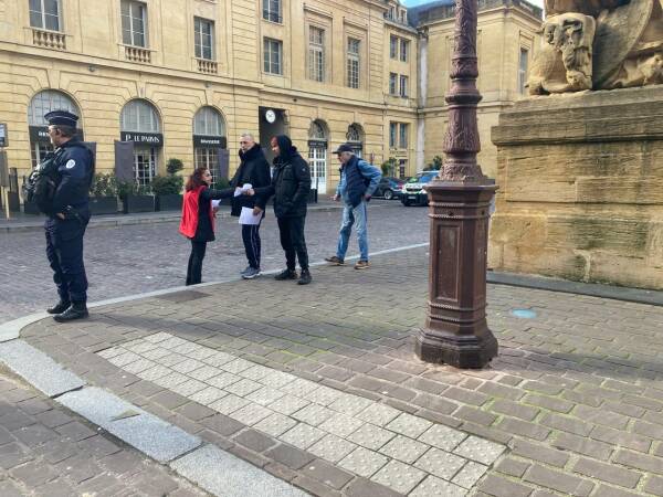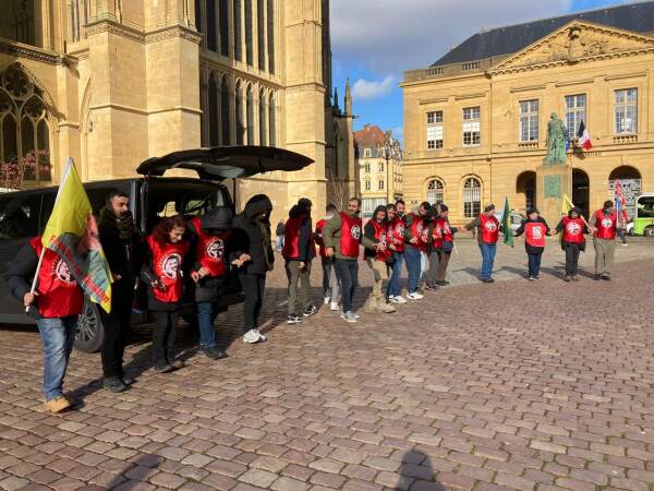 Çalakvanên ku li pêşiya Şaredariya Metz a li Place d'Armes'de li hev civiyan, danezana bi zimanê Fransî xwendin. Piştre rayedarek Partiya Komunîst a Fransayê daxuyanî da. Di daxuyaniyê de ji bo serkeftina Pêngava Azadiyê îşaret bi têkoşîna hevpar hate kirin.