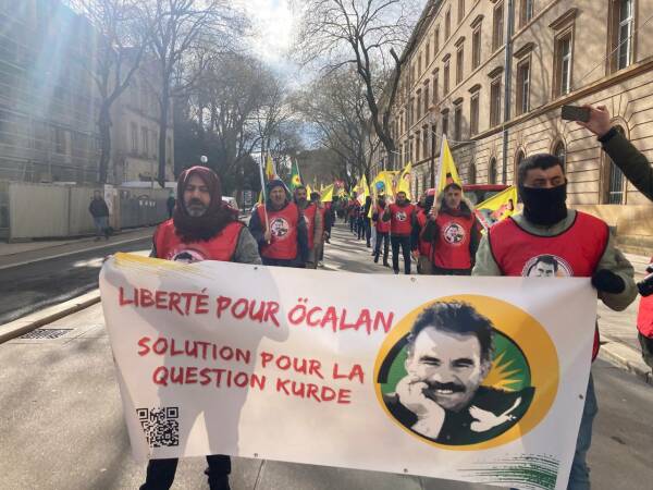 Di meşê de dirûşmeyên "Bijî Serok Apo”, “Bê Serok Jiyan Nabe”, “Bijî Berxwedana Gerîla”, “Bijî Berxwedana Rojava” û “Ji Rêber Apo re Azadî, ji Pirsgirêka Kurd re Çareserî” hatin berzkirin.