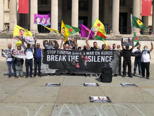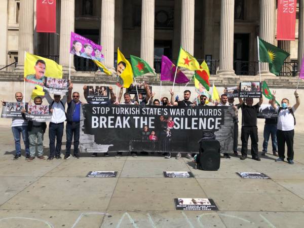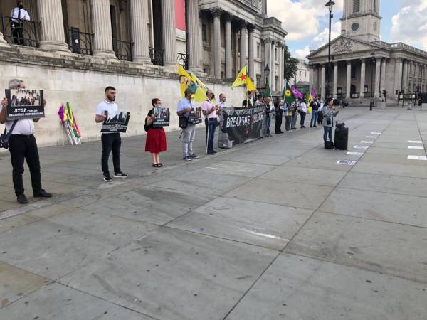 Li ser banga Meclîsa Gel a Brîtanya, Meclîsa Gel a Kurd a London û Însyatîfa Jina Kurd li paytexta Brîtanya Londonê li Qada Trafalgerê çeteyên DAÎŞ’ê û dewleta Tirk hatin protestokirin. Di axaftinên hatin kirin de ev hate gotin: “PKK bi hewara civaka Êzidî hatin. Em hiştina PDK’ê ya civaka Êzidî ya di destê DAÎŞ’ê de jî ji bîr nakin.”
