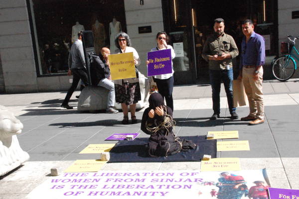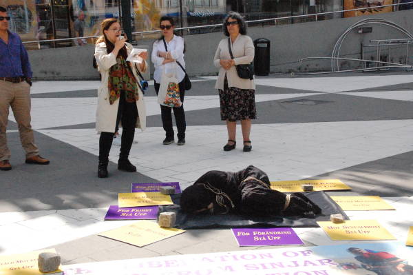 Li stasoyan navenda metro û Qada Sergelstorg a Stockholm a Swêd bi pêşengtiya Navenda Civaka Kurd a Demokratîk a Swêd û Meclîsa Jinan a Amara çalakiyek hate kirin û qirkirina li ser Êzidiyan hate protestokirin. Di çalakiyê de hate gotin ku êrîşa DAÎŞ’ê qirkirina jinê ye û banga piştevaniya bi Êzidiyan re hate kirin.