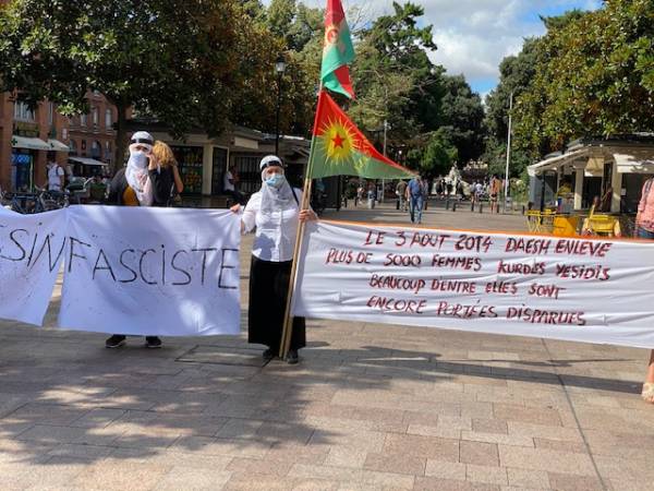 Li gelek bajarên Ewropayê êrîşên qirker ên DAÎŞ’ê ya li ser Êzidiyan tê protestokirin. Di çalakiyan de rola PKK’ê ya di rizgarkirina Êzidiyan de jî hate silavkirin.