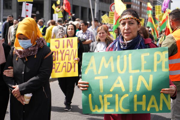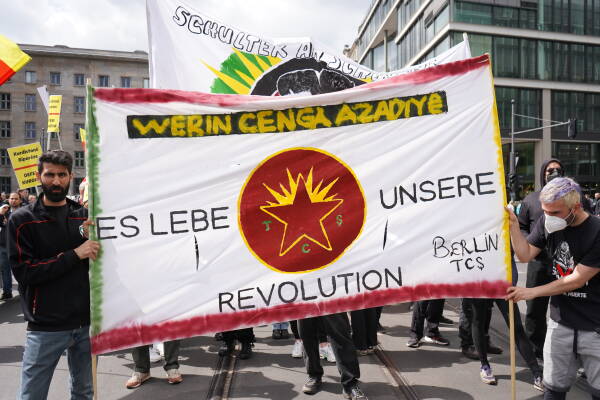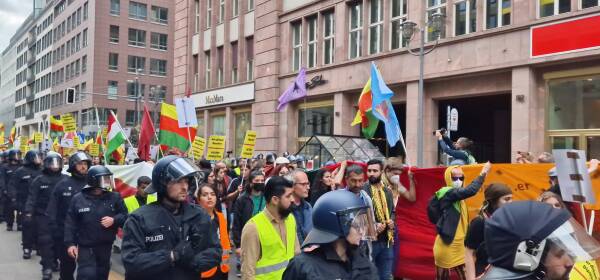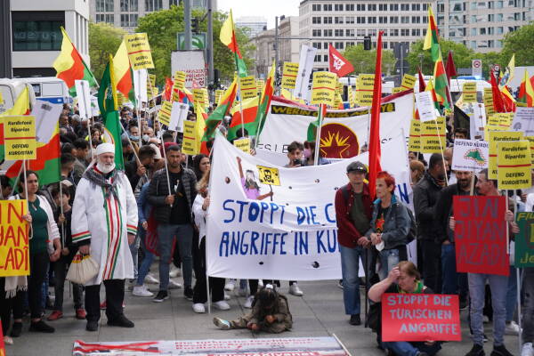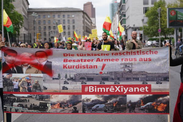 Li paytexta Elmanyayê Berlînê, îro bi armanca şermezarkirina êrîşên dagirkeriyê yên dewleta Tirk ên bi hevkariya PDK’ê li ser Başûrê Kurdistanê ku 17ê Nîsana 2022‘yan dane destpêkirin xwepêşandeke girseyî hat lidarxistin.