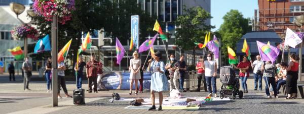 Li Duîsburgê çalakiya ji aliyê Meclîsa Jinan a Şehîd Asya Yuksel ve her roja Çarşemê li Avendukplatzê tê kirin di hefteya xwe ya 8’emîn de ye.