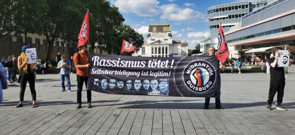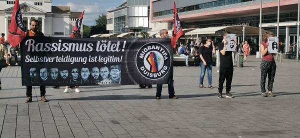 Bi tevîbûna saziyên Kurdan, Elman û Tirkiyeyiyan ji bo ketina meha 5’an a qetlîama Hanaû yê ji aliyê Migrantîfê ve li Konîgstr a Navenda Bajarê Dûîsbûrgê saet 17:30’î çalakiyek hate kirin. Di bîranînê de navê koçberên ku li Hanaûyê hatin qetilkirin hate xwendin.