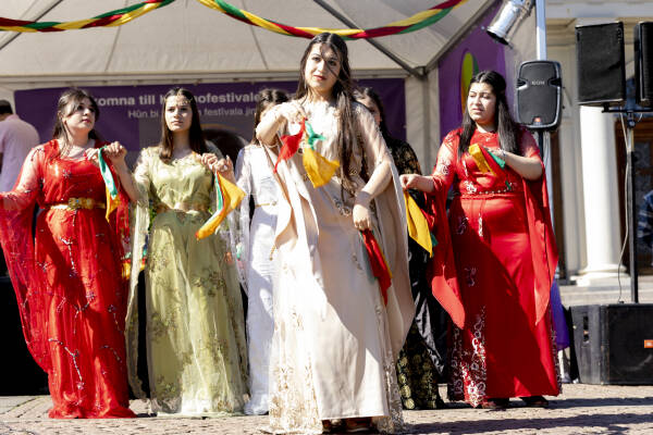 Fetîvala ku ji aliyê Yekîtiya Jinên Kurd a li Skandînavyayê (YJK-Skandînavya) ve hate organîzekirin, li meydana Gûstav Adolfstorgê Pêk hat û jinên ji gelek neteweyên cuda jî tevlî bûn.