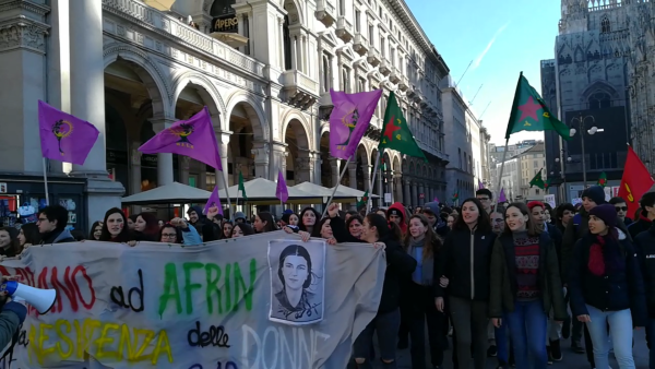 MILANO: Li bajarê Milanoyê, di roja 8'ê Adarê de jinan komkujiyên ku dewleta Tirk a faşîst li Efrînê dike şermezar kirin. Çalakî ji aliyê 100 saziyan ve hate organîzekirin û bi hezaran kes tevlî bûn. Bi navê Komîteya Kurd a Mîlano axaftin hate kirin û hate destnîşankirin ku li dijî êrîş û komkujiyên li Efrînê tê kirin berxwedaneke dîrokî heye.