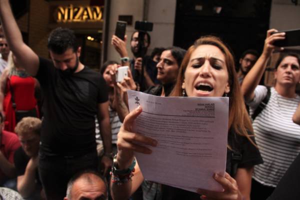 Dayikên Şemiyê, Xizmên Windayan, Mirovên Şemiyê, parlamenterên Partiya Demokratîk a Gelan (HDP) Ahmet Şik, Garo Paylan, Zuleyha Gulum, Alî Kenanoglu, Hevseroka Giştî ya ÎHD’ê Eren Keskîn, nûnerên partiyên siyasî û rêxistinên civaka sivîl ên li ber avahiya Şaxa Komeleya Mafê Mirovan a (ÎHD) Stenbolê kom bûn, xwestin heya Qada Galatasarayê bimeşin. Polîsên ku li ber Kolana Deriyê Parka Mezin a Cadeya Îstîklalê pêşiya girseyê girtin, destûr nedan biçin qadê û diyar kirin ku wê di çarçoveya biryara Qeymeqamtiya Beyoglû de destûr nedin bikevin Qada Galatasarayê.