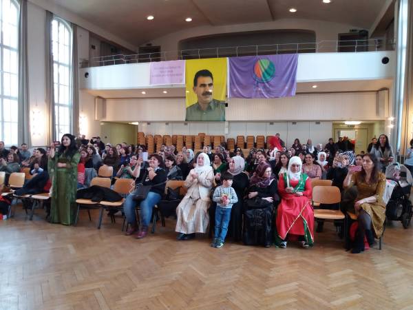 Meclîsa Jinê ya Viyan a Wuppertalê, Însiyatîfa Jinê ya Nalîn Mûş a Dusseldorfê, Komuna Jinê ya Ekîn wan a Krefeldê, Komuna Jinê ya Tîjda Ekecîk a Grevenbroichê, Însiyatîfa Jinê ya Neuse yên di nava Yekîtiya Jinên Kurdistanê-Elmanya (YJK-E) de cih digirin û Navenda Civaka Demokratîk a Kurd a Dusseldorfê (NCDK) bi wesîleya 8'ê Adarê li bajarê Dusseldorf ê Elmanyayê çalakiyek ji bo piştgiriya Efrînê lidar xistin. Hatineya ji çalakiyê bi dest ket, wê ji bo Efrînê bê şandin. Çalakî bi dirûşma "Em tecrîda li ser Îmraliyê parçe bikin, bi Rêberê xwe re bi rengekî azad bijîn" pêk hat. Parlamentera HDP'yî Tugba Hezer li vir axivî û Berxwedana Serdemê ya li Efrînê silav kir.
