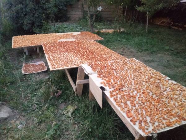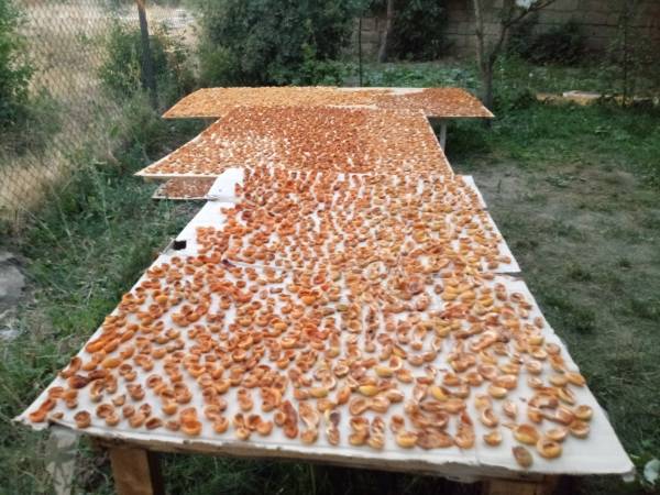 Li Wanê bi havînê re jin li baxçeyên xwe fêkiyên ku hişk kirin ji bo zivistanî hazir dikin.