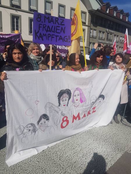 8'ê Adarê li gelek bajarên Swîsreyê hate pîrozkirin. Jinên Kurd ên bi rengê xwe tevlî çalakiyan bûn bal kişandin ser berxwedana Efrînê û gotin, "Berxwedana jinê ya li Rojava û Efrînê wê hemû jinên li cîhanê azad bike."