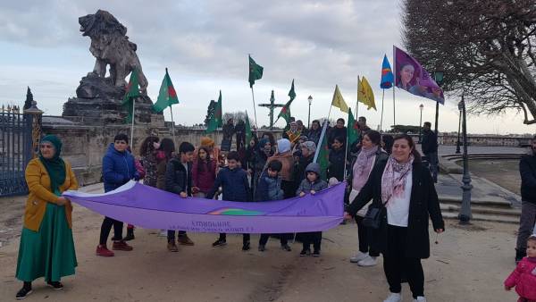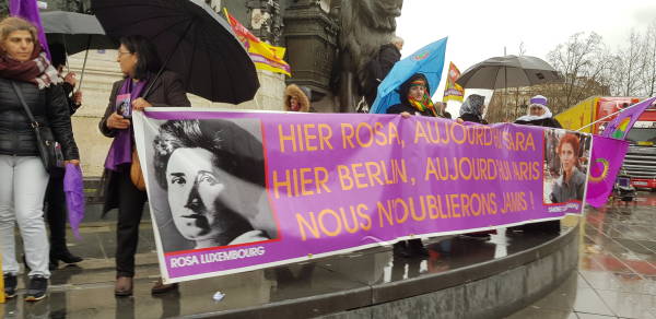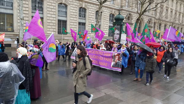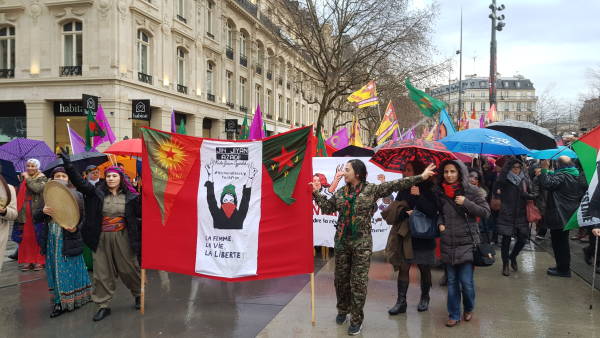 PARIS: Ji bo pîrozbahiya li paytexta Fransa Parisê, saziyên jinên Kurdan jî di navê de platformeke hevpar a ji 50 saziyan hate avakirin. Bi hezaran jinên bi pêşengiya platforma hevpar li meydana République li hev civiyan, heta qada Opera meşiyan. Jinên Kurd ên bi reng û coşa xwe tevlî çalakiyê bûn, li ber erbaneyê dirûşma "Jin, Jiyan, Azadî" qîriyan. Di dema meşê de peyama Tevgera Jinên Kurd hate dayin û hate gotin, "Azadiya jinê xewn û xeyal nîne. Rastî ye. Azadiya jinê êdî ne tenê daxwazek e, bûye sîstemeke civakî ya alternatîf ku ava bûye."