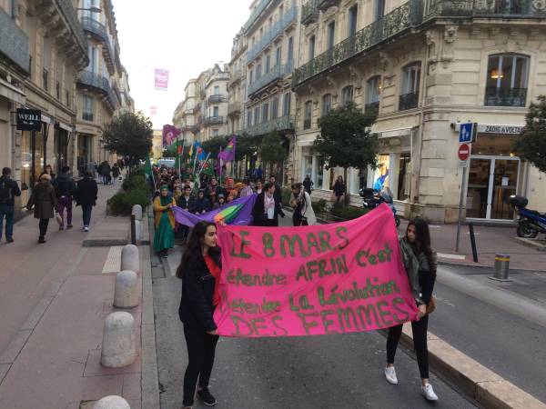 MONTPELLIER: Jinên Kurd ên li bajarê Montpellier ê Fransayê dijîn, bi heman wesîleyê ji Parka Peyru heta meydana Comedie meşiyan. Di meşê de dirûşmên "Jin, Jiyan, Azadî", "Bijî berxwedana YPJ'ê", "Bijî berxwedana Efrînê" hatin qîrîn. Piştî meşê li meydana Comedie mîtîng hate lidarxistin û Berxwedana Serdemê hate silavkirin.
