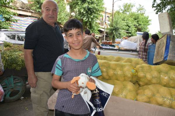 Jin ên Ciwan ên Têkoşer bi wesîleya rojê li kolanên Silêmaniyeyê bi zarokan re dem derbas kirin û pêlîstok li wan belav kirin.