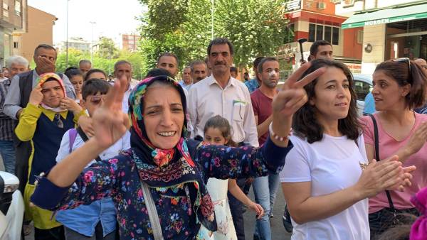Girseya li qadê sloganên ‘Em ê bi berxwedanê bi ser bikevin’ û ‘Amed ya me ye’ berz dikin.