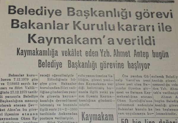 Bi qetilkirina Solmaz re hikumeta Ankarayê bi biryarnameyeke di 7’ê Kanûna 1979’an de kaymakamê Êlihê peywirdar kir. Lê ji ber ku rayeya kaymakam jî vala bû serbazekî bi navê Ahmet Antep bi biryara Desteya Wezîran him bûbû kaymakam û him jî bû şaredar. Leşkerekî Tirk li Kurdistanê bû şaredar ev jî diyar dike ku dema li Kurdistanê tevgera gel mezin bibe wê dewleta Tirk polîtîkayên wisa bike.