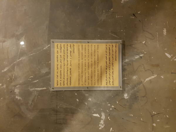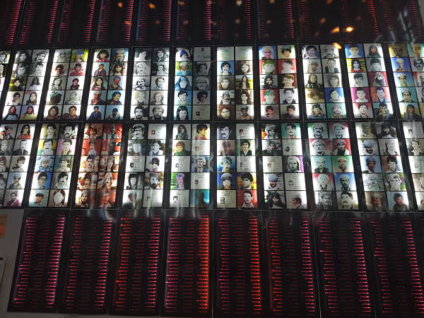Pişte em ji deriyê ji hesin ê mezin dikevin nava cihekî mîna labîrent. Li ser dîwarê wê parçeyên ji eynikan hene. Ampûl li her du aliyên wê hatine zeliqandin. Rêber dibêje, ji bo 182 hezar kesên hatine kuştin parçeyên eynikê û ji bo 4 hezar gundên hatine şewitandin jî 4 hezar lambeyên biçûk hatine daliqandin.