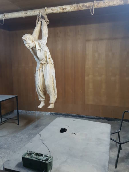 Bi qasî 10 metreyan dûrî odeyên êşkenceyê, hucreyên yek kesî hatine çêkirin. Li hucreyan jî peykerê mirovên bi zincîran hatine girêdan hatine çêkirin. Peykerê mirovên ku hatine tazîkirin...