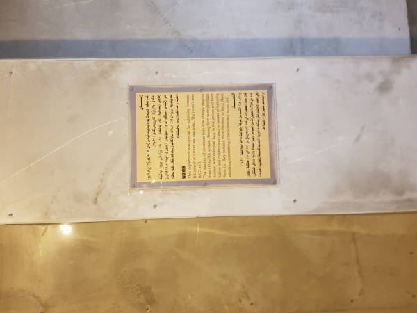 Piştî ku em ji labîrentê derbas bûn, dikevin saloneke ku bi sed metreyî dirêj e û bi bîst û pênc metreyan berfireh e. Korîdoreke ji pênc metreyan berfireh li navenda salonê heye. Du beşên li çep û rastê korîdorê bi hesin hatine girtin.
