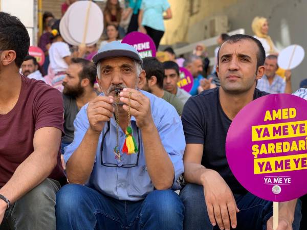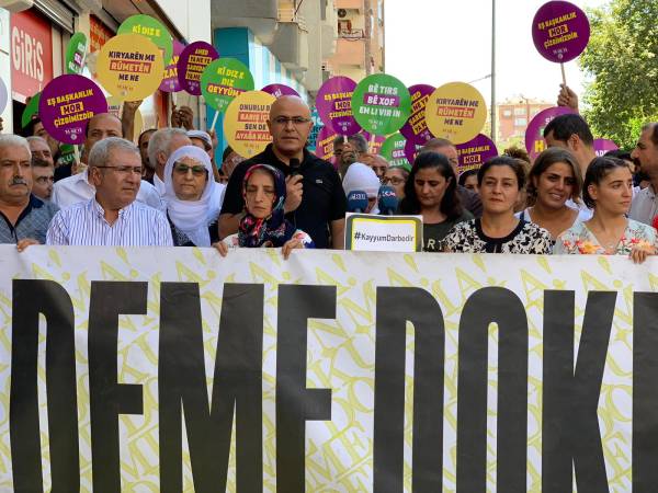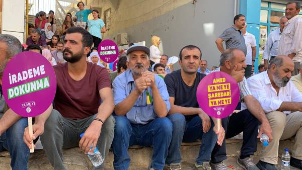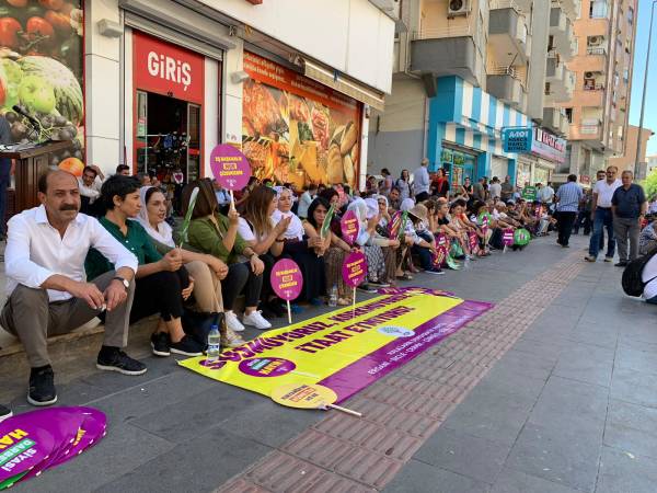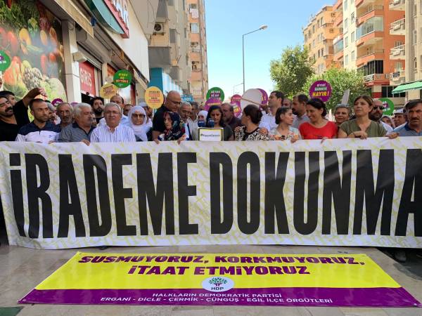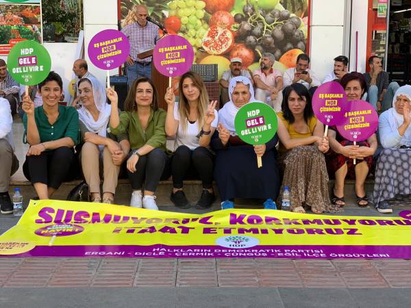 Şêniyên Erxenî, Pîran, Çermûk, Çunguş, Exîl tevlî çalakiyê bûn. Jinên HDP'î pankarta bi nivîsa "Em bêdeng nabin, serî natewînin, natirsin", "Kî diz e qeyûm diz e", "Hevserokatî xeta me ya xemrî ye" û "Na ji darbeya siyasî re" hildan.