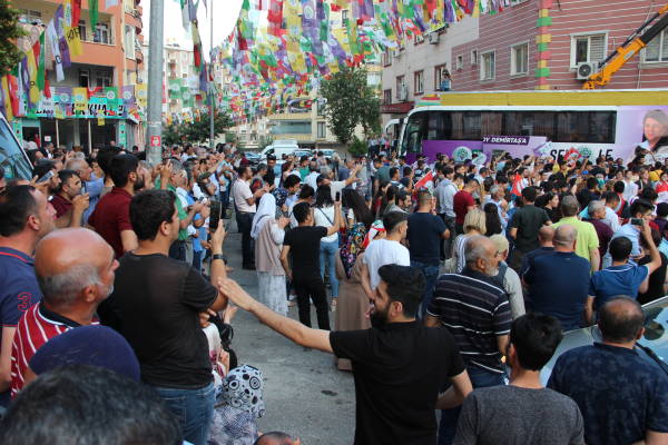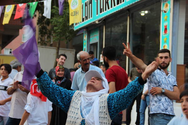 Welatiyên ku herikîn pêşiya avahiya Partiya Demokratîk a Gelan (HDP) a bajar li vir encamên hilbijartinê şopandin. Keyfxweşî û coşa Amediyan ber bi çav hate dîtin, diyar kirin ku bi hêvîne ku HDP û Selahattîn Demîrtaş ji hilbijartinê bi serketî derbikevin.