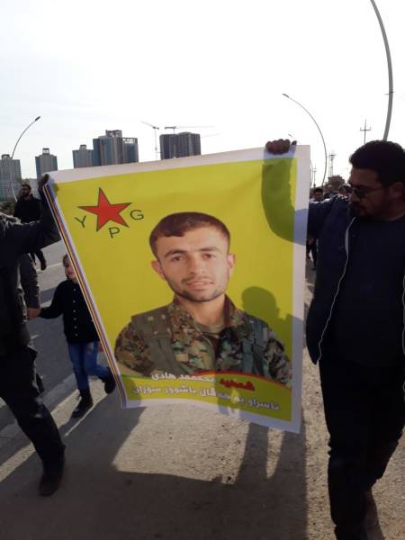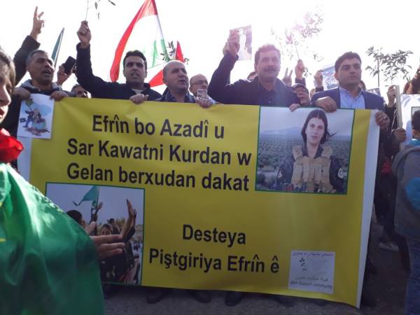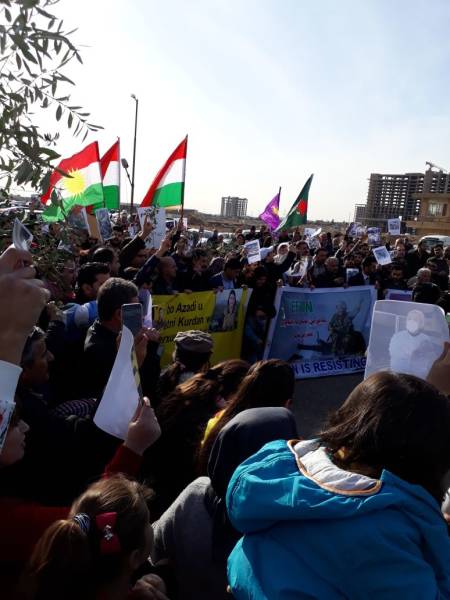 Bi pêşengiya Komîteya Piştgiriya ji bo Efrînê, bi hezaran kes li Hewlêrê meşiyan. Girseya gel li ber Nûnertiya Neteweyên Yekbûyî ya li Hewlêrê li hev civiya û bi qîrîna dirûşmên "Kujer Erdogan", "Dîktator Erdogan", "Hebin hevparê sûcê li dijî mirovahiyê yê ji aliyê Erdogan ve tê kirin" meşiya.