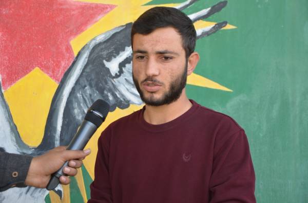 MERCAN KABÛL: Di serî de êrîş faşîst a dewleta Tirk a li ser Efrînê şermezar dikim. Çiqas êrîş li ser gelê Kurd û Efrînê bê kirin wê gelê Kurd têk neçe û berovajî wê bê bi hêz bibe û bi ser bikeve. Çawan ku li Koban, Şengal û deverên Rojava me li ber xwe dan em ê bi heman hêzê li Efrîn jî li ber xwe bidin û dijmin têk bibin. Dewleta Tirk ne bi tank top û balafirên xwe êrîş bikin bi hemu hêz û hovîtiya xwe êrîş bike, em weke ciwan rê nadin ku Tirkiye bikeve xaka Efrînê û Rojavayê Kurdistanê. Heta dawiyê em ê li ber xwe bidin.