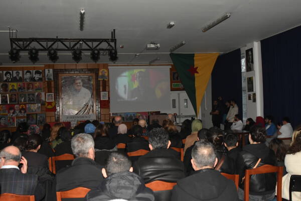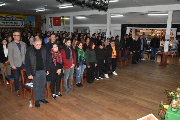 Di bîranîna ku dirûşmeyên “Şehîd Namirin” û “Bijî Serok Apo” hatin berzkirin de pismamê Zinar Sîpan Yalçin Tetwan destpêkê mafê axaftinê girt.